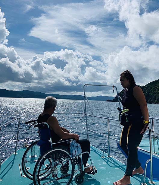 0才の赤ちゃんや妊婦さん、また、歩くのが困難な方や車椅子の方、どなたでもご参加いただけます。ただし、ホエールウォッチングの最中にご体調を崩された場合など、すぐに陸地へ戻れないので、体調が心配だけど参加はしたい!という場合は、船のチャーター(貸し切り)がおすすめです。