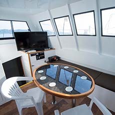 ゼログラヴィティの船の室内は、エアコンがついており、寒い日は外洋までの移動時間を暖かい空間で過ごしていただいく事ができます。